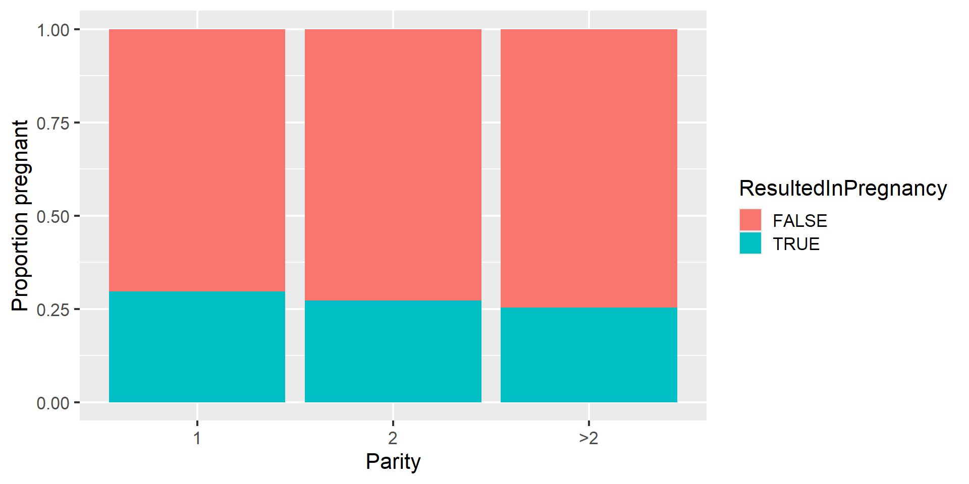 glm(formula = Pregnant ~ Parity, family = "binomial", data = df_inseminations)